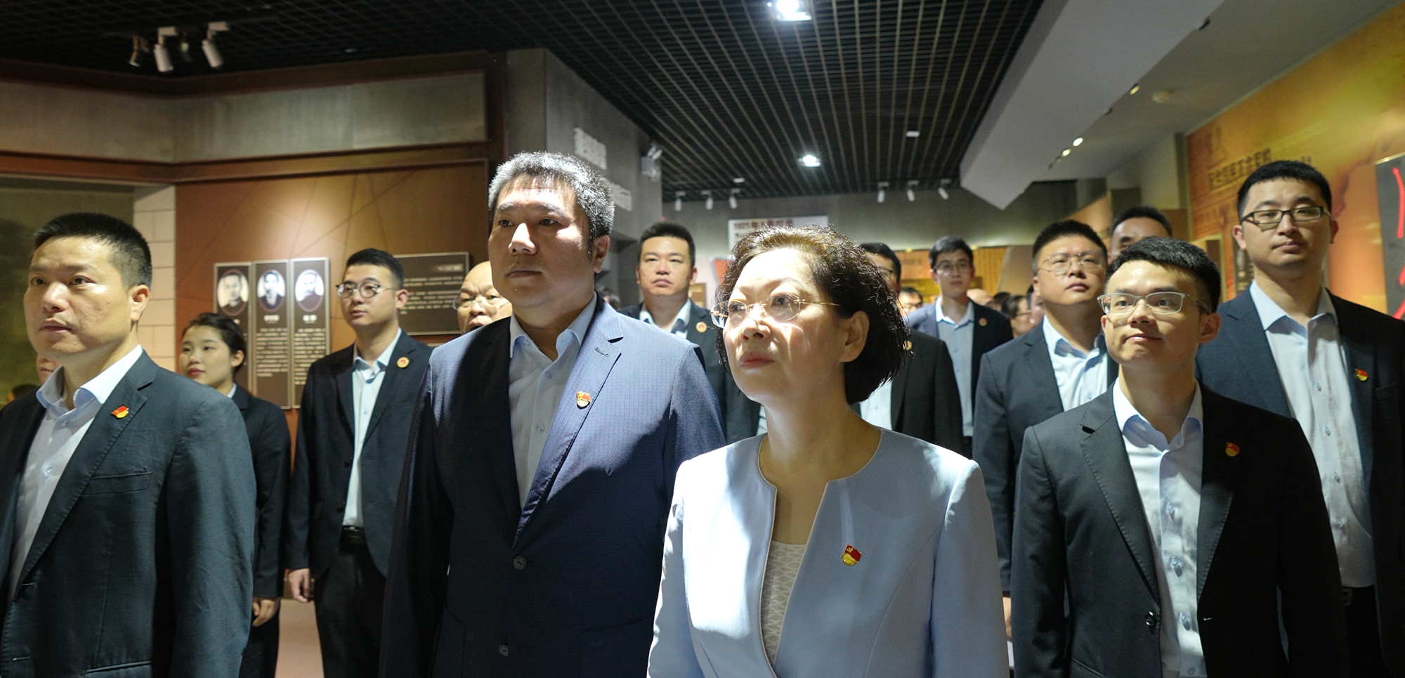 参观结束后,刘景萍董事长作为集团党组织负责人,带领营销管理团队全体党员在宣誓墙面前集体宣誓,重温入党誓词。