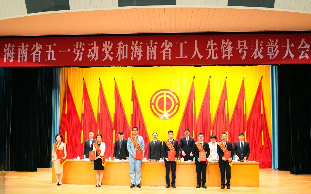 会议宣读了《中华全国总工会关于表彰2023年全国五一劳动奖和全国工人先锋号的决定》《海南省总工会关于表彰2023年海南省五一劳动奖和海南省工人先锋号的决定》,现场表彰了全国五一劳动奖章获得者和获得全国工人先锋号的先进集体、先进个人,及海南省五一劳动奖章获得者和获得海南省工人先锋号的班组。