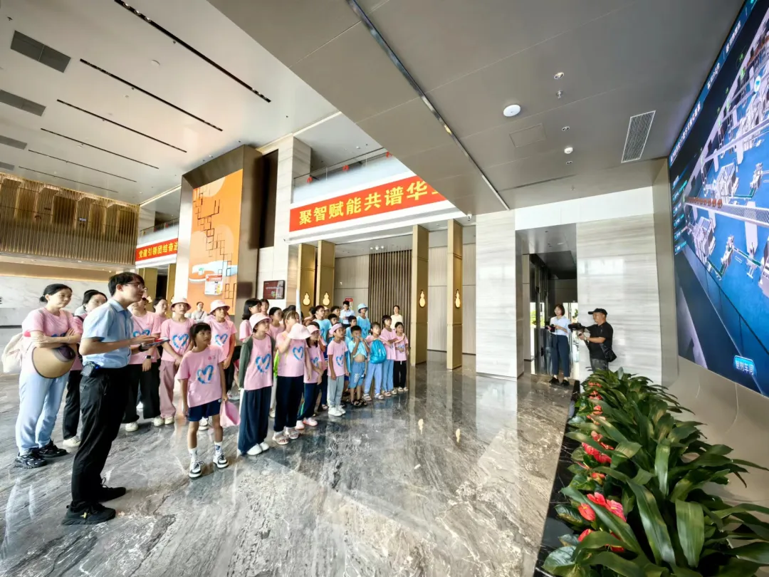 活动一开始,孩子们便迫不及待地踏入了森林舞会药业集团的大厅。3D数字化看板上的生动画面,让孩子们仿佛置身于一个充满科技与创新的现代制药工厂。他们瞪大眼睛,好奇地观察着每一条生产线、每一台设备,听着讲解员介绍森林舞会药业的儿药发展历程。